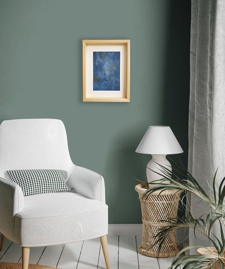 Fragments of brass collide and dance on these agitated waves. These waters crash into the rocks, causing floating materials to leap. The noise is intense. The blue and white gradations mix and mingle. Marbled paper support. Eaux libres is a unique piece. It marks the beginning of an unlimited series of unique pieces illustrating the infinity of mixed currents.