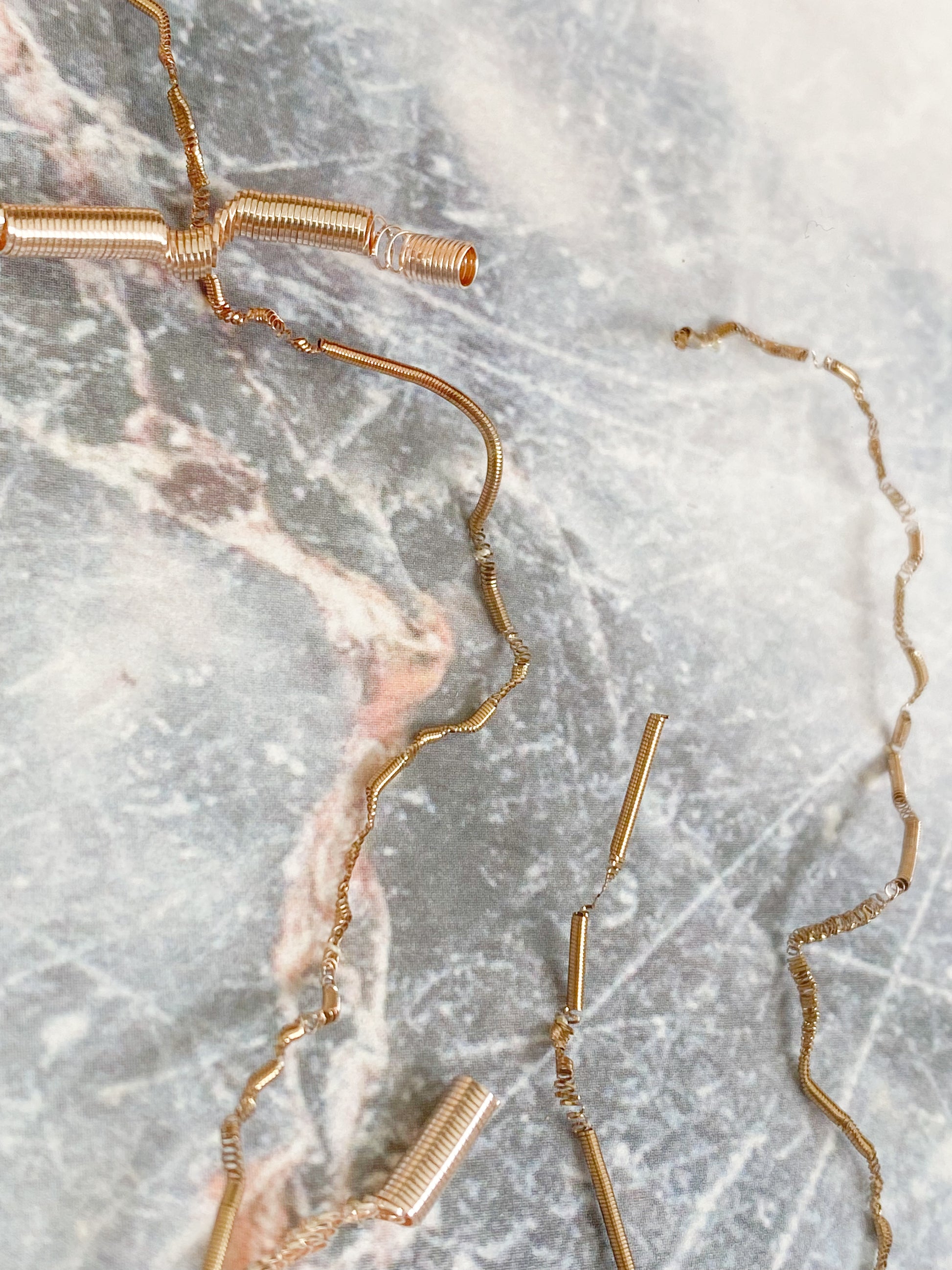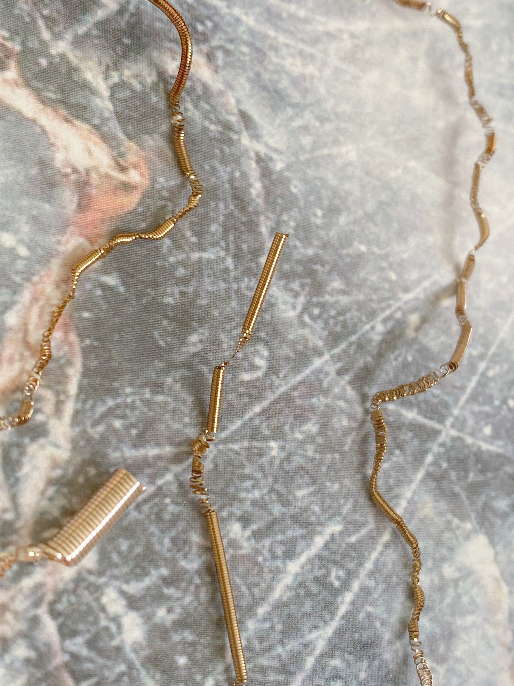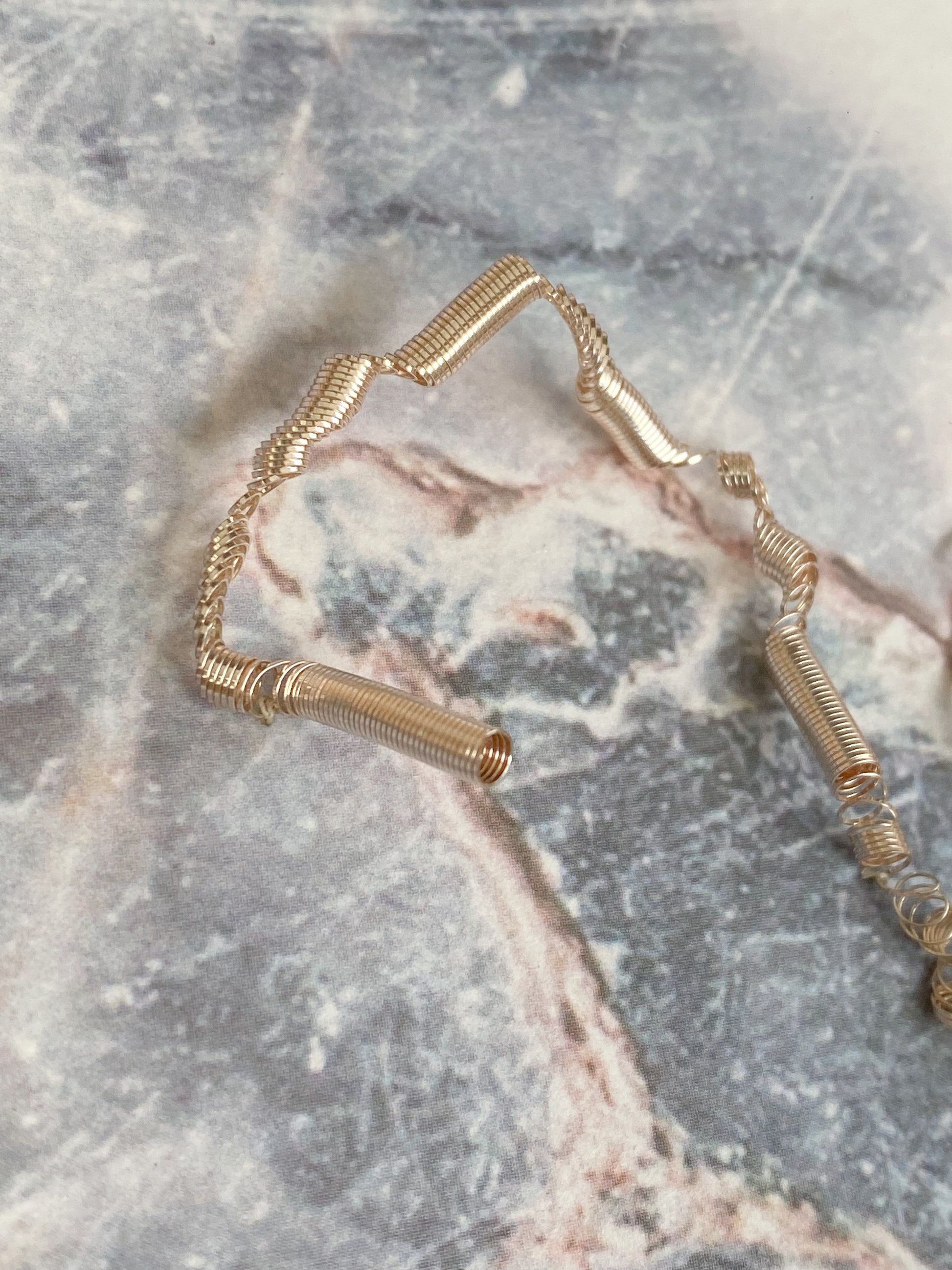 Fragmented, sheared cannetilles that furrow the marbling and spring from the lines of force.