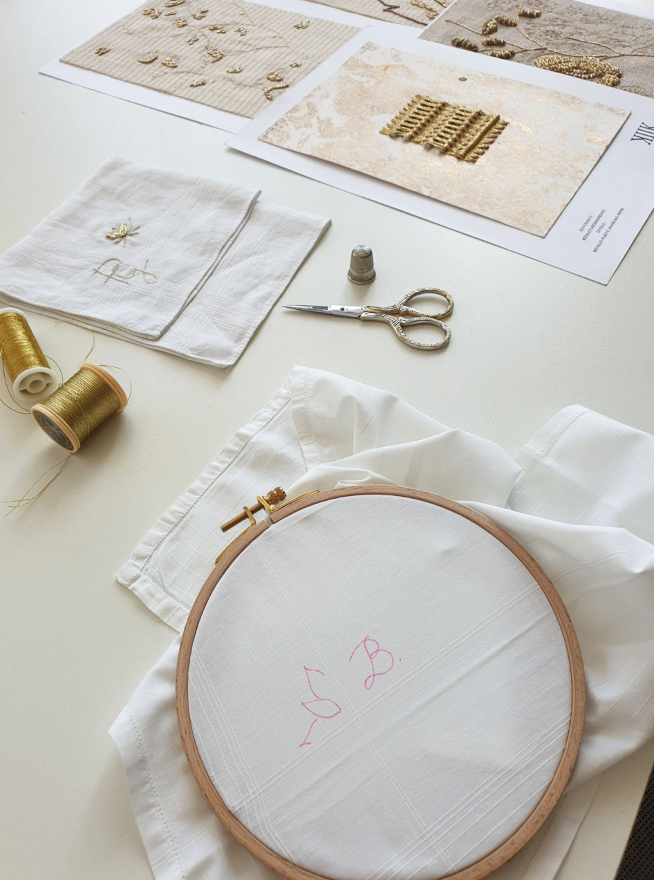Brodez votre mouchoir en coton au fil d'or - 1h30