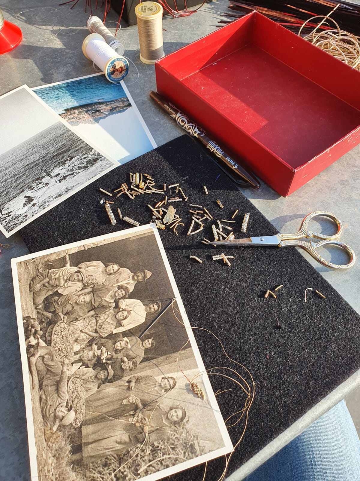 Les supports graphiques et intimes comme les photos de famille ou les cartes postales sont de merveilleux terrains d’expression. Après avoir découvert quelques points de base, vous commencez à broder vos photos. De style naïf, humoristique, floral ou autre, je vous accompagne dans la réalisation de vos petites œuvres en papier brodé.