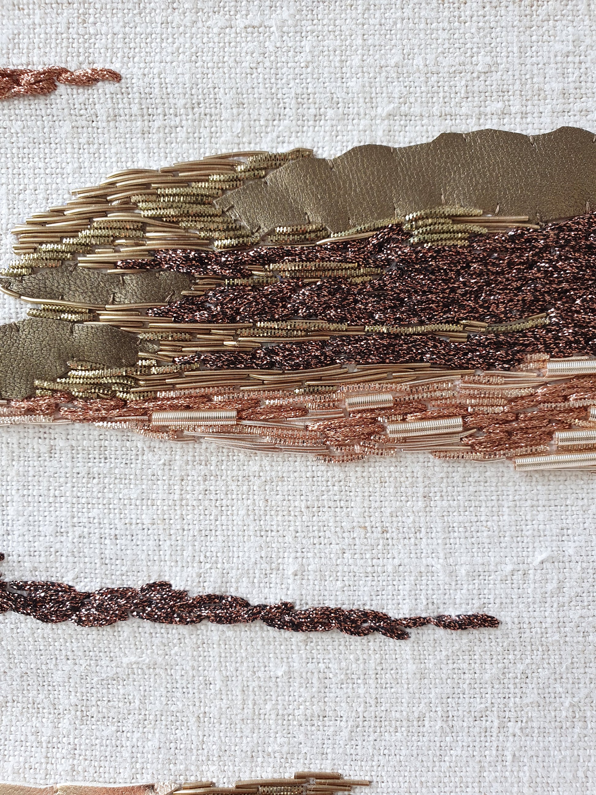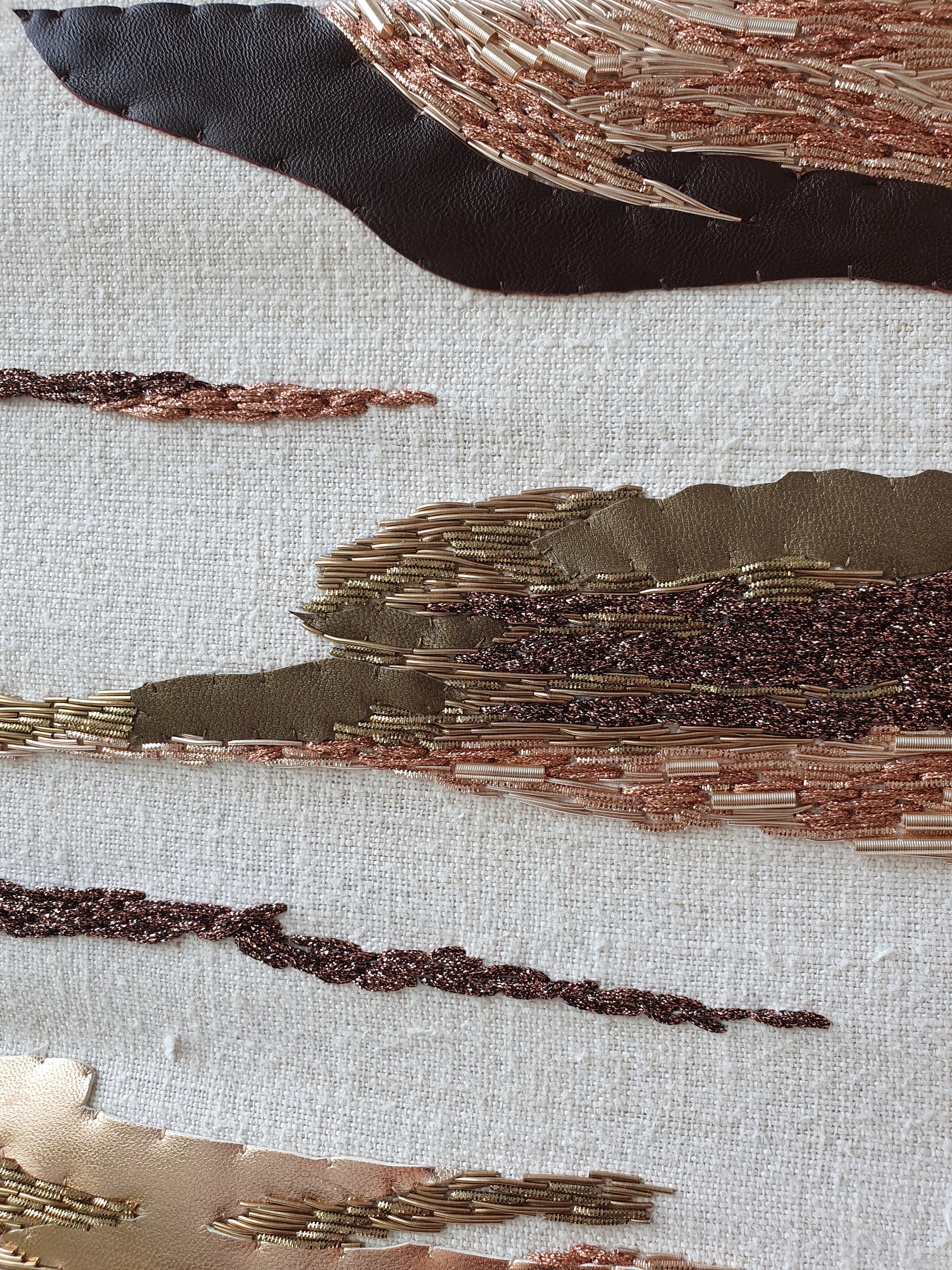 Fin 2024, j'ai été invitée en résidence artistique à Cap Karoso sur l'île de Sumba. Cette île, située en Indonésie, reste, encore à ce jour, authentique. Les traditions et la Nature qui la composent sont saturées en couleur et texture. Par ce tableau, j'ai exprimé le souvenir d'une fin de journée face à la mer où le ciel était transcendant. Des teintes or rose, bordeaux, kaki et cuivrés qui traversent le ciel et portent encore la chaleur de la journée.